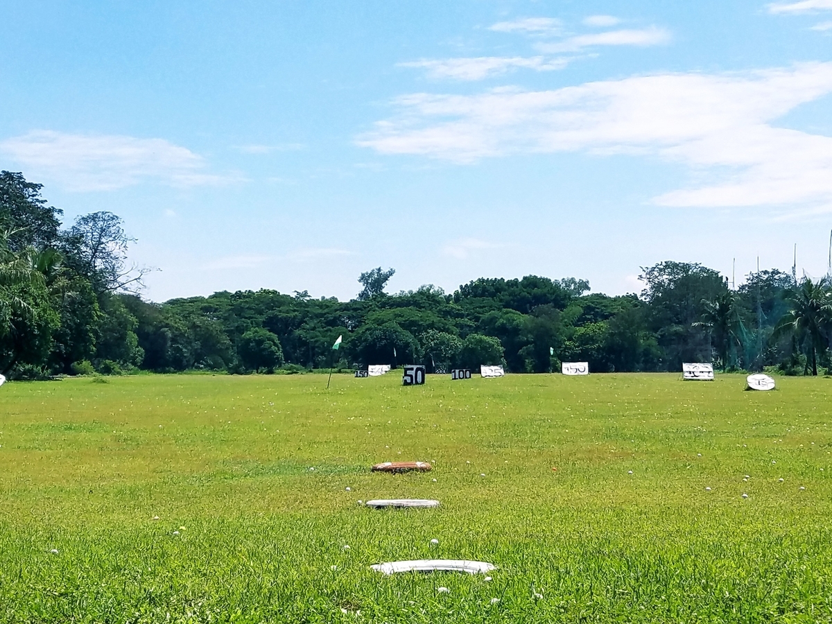 レッスンの初っ端は前回と同様に50ヤードを目標に大きな放物線を描き真直ぐ打つ。
